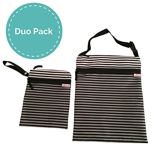 - Product Name: Travel Wet and Dry Bag by Tutti Bimbi - Duo Pack Waterproof Seamed Large and Small (black and white stripe)
